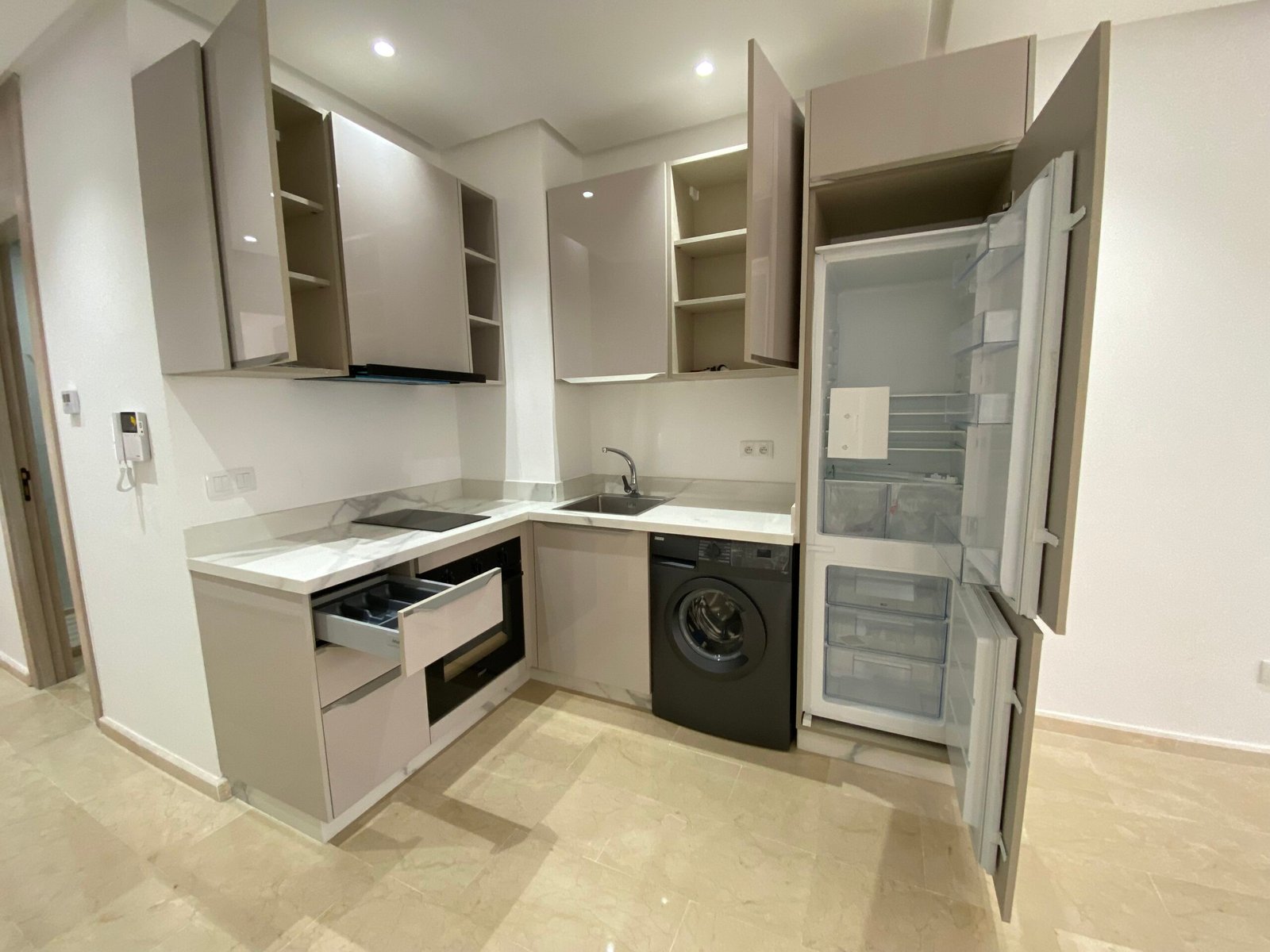De woning beschikt over strakke leefruimtes met hoogwaardige vloeren, ingewerkte verlichting en een open keuken die naadloos aansluit op de leefruimte.