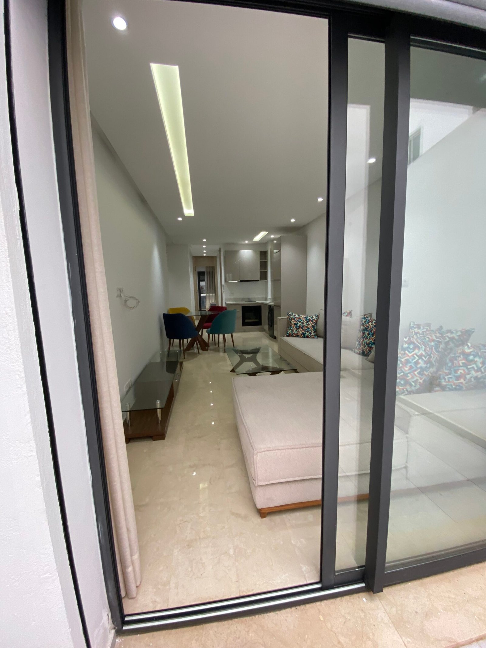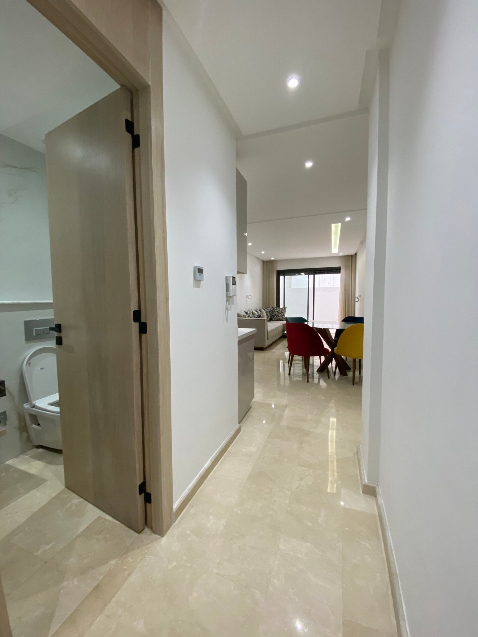 Dit recent gerenoveerde appartement in Casablanca straalt rust, licht en moderne afwerking uit. De woning beschikt over strakke leefruimtes met hoogwaardige vloeren, ingewerkte verlichting en een open keuken die naadloos aansluit op de leefruimte.